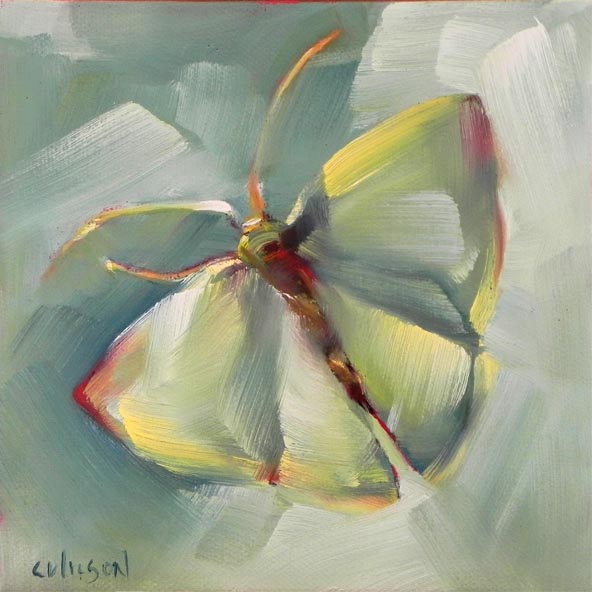 This week's Challenge: paint an insect. Insects are everywhere when you don't want them. And if I found one, could I look at it long enough to paint it without creeping out. And then there this one was, a little green moth on my kitchen window screen. Really quite pretty.